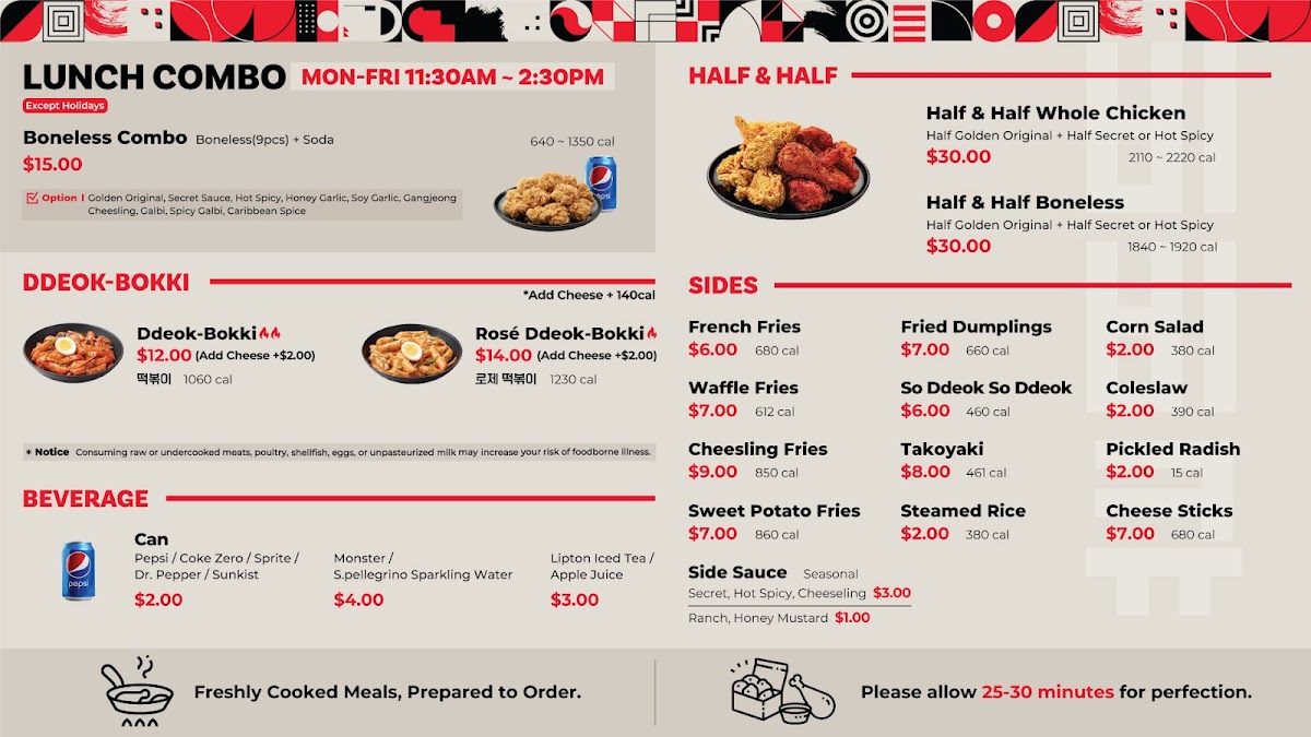 “ I’ve heard so much about this place it’s really good the food is fresh even the chicken when you get to the bone it’s white which means the chicken they use is FRESH. The inly thing is take a little bit longer than usual restaurants but maybe because they’re short staffed and the food comes out hot and fresh. We had fried dumplings, Galbi wings and original flavor 6pcs whole chicken . Everything was delicious and my favorite was how crispy the chicken is but still not crispy to the point it breaks down your teeth . Lol. But this one was perfect crunch. ”